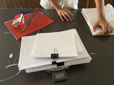 Unused pages are carefully extracted from partially-used notebooks donated to us. These are then re-bound into neat, usable notebooks. The leftover used paper and book covers are then given to local kabadiwallas for recycling. The funds generated from the sale of this material goes toward covering the cost of binding the books.